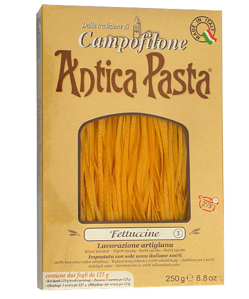 Zloženie cestovín: Semola múka z tvrdej pšenice, vajcia, voda. 250 gr cestovín varte minimálne v 5 l.vody. Varte ich 2-3 minúty na tvrdosť aldente - polotvrdo aby sa uchovali chuťové vlastnosti cestovín.